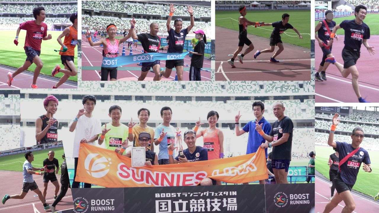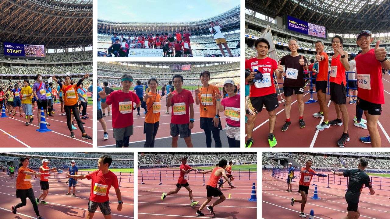2023.6.18①国立競技場で開催のフルリレーマラソンに、コーチと会員合わせて70名、9チームで参加しました。様々な走力からなるチーム構成でしたが結果は見事、全チーム3時間半以内でゴールしました!